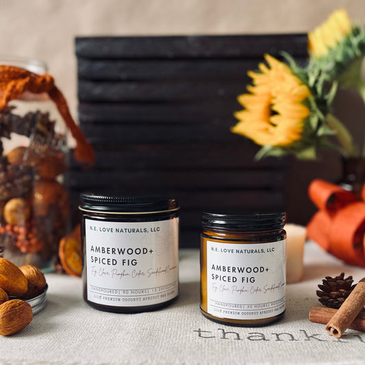 Amberwood+ Spiced Fig |Coconut Apricot Soy Candle in Amber Glass Jar