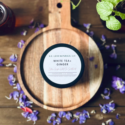 White Tea + Ginger| Coconut Apricot Soy Wax Candle in Travel Tin