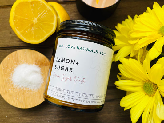 Lemon+ Sugar Luxury |Coconut Apricot Soy Candle in Amber Glass Jar