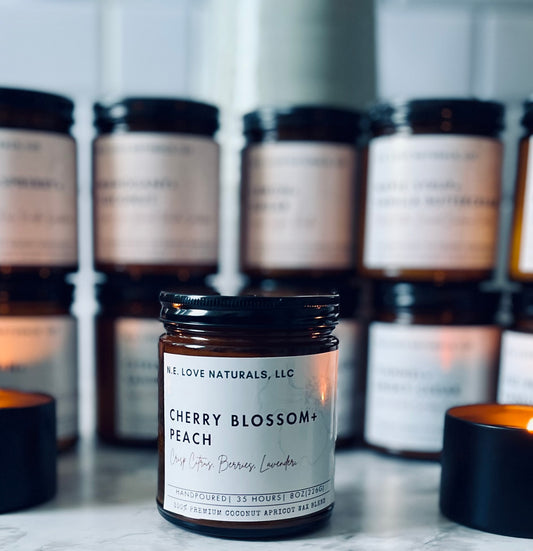 Cherry Blossom+ Peach| Coconut Apricot Soy Candle in Amber Glass Jar