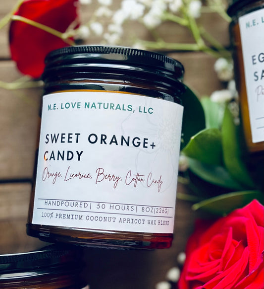 Sweet Orange + Candy| Coconut Apricot Soy Wax in Amber Glass Jar