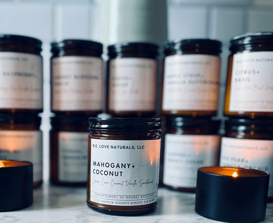 Mahogany+ Coconut |Coconut Apricot Soy Candle in Amber Glass Jar
