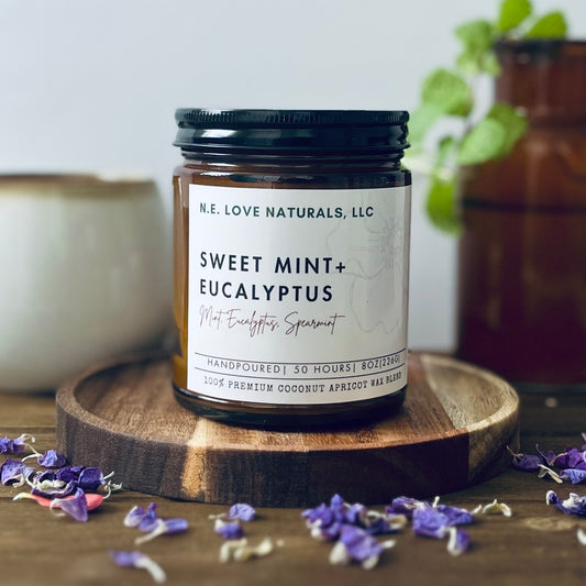 Sweet Mint+ Eucalyptus| Coconut Apricot Soy Wax Candle in Amber Glass Jar
