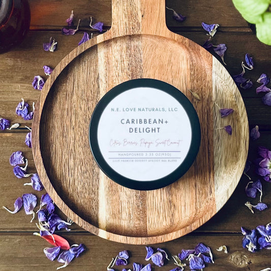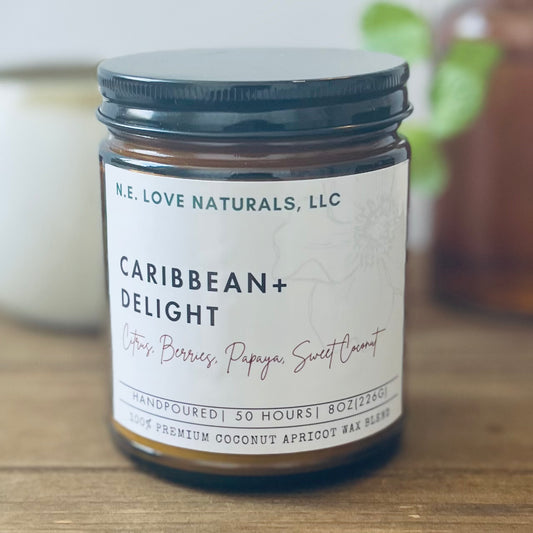 Caribbean+ Delight | Coconut Apricot Soy Candle in Amber Glass Jar