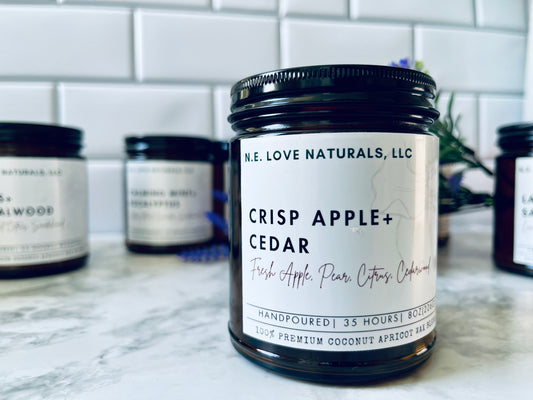 Crisp Apple+ Cedar | Coconut Apricot Soy Candle in Amber Glass Jar