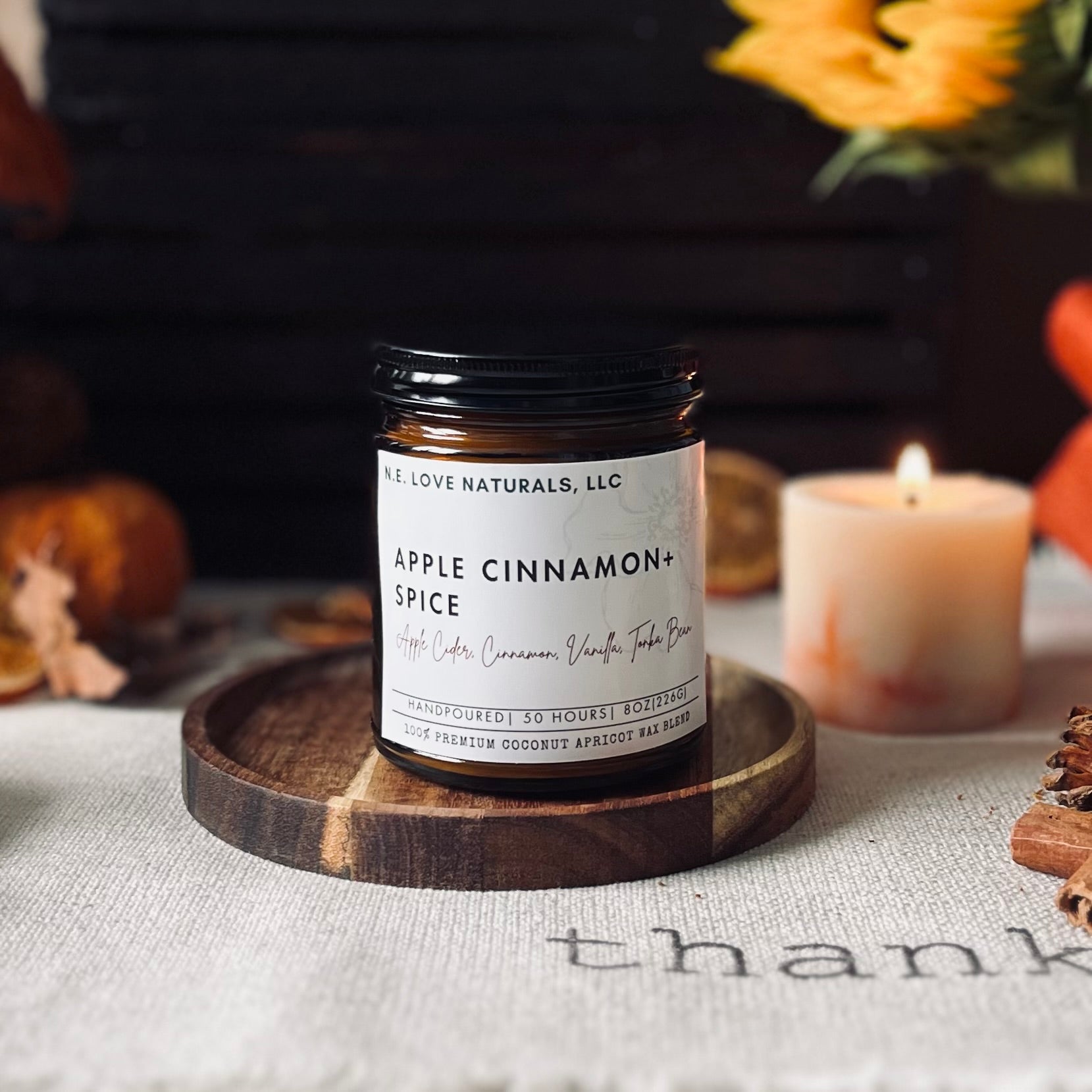 Apple Cinnamon+ Spice |Coconut Apricot Soy Candle in Amber Glass Jar