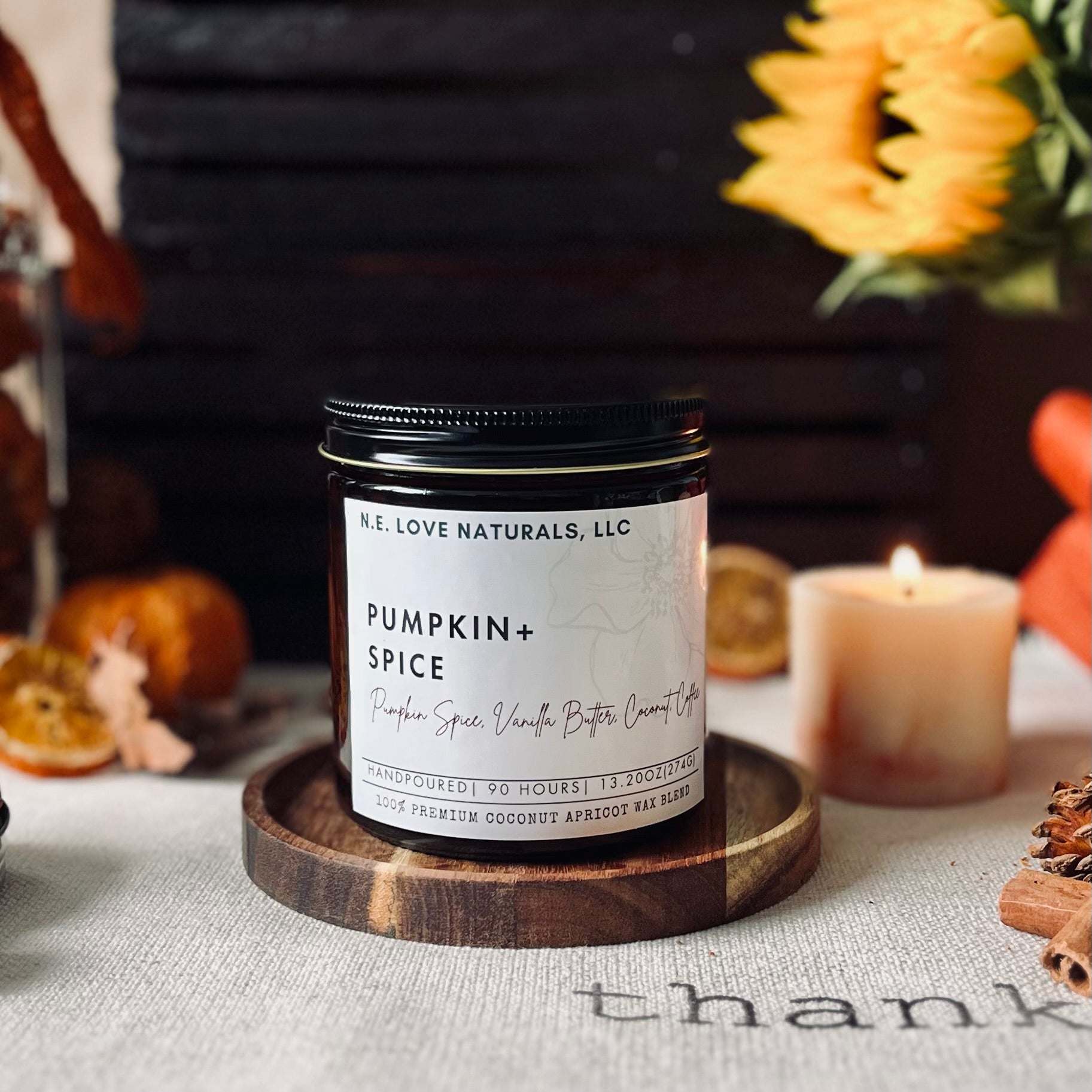 Pumpkin+ Spice |Coconut Apricot Soy Candle in Amber Glass Jar| Large